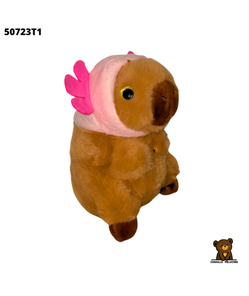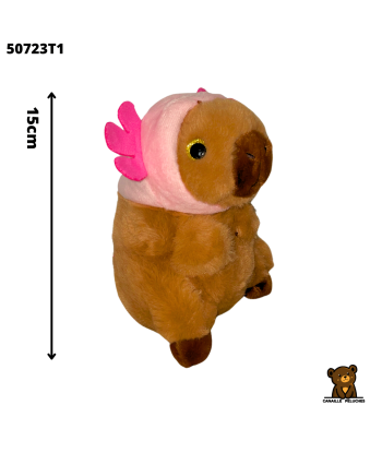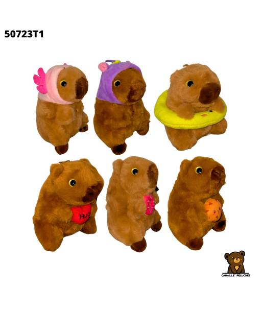 Peluche capybara de 15cm, disponible en 6 couleurs mélangées. Vendu par 12 pièces.