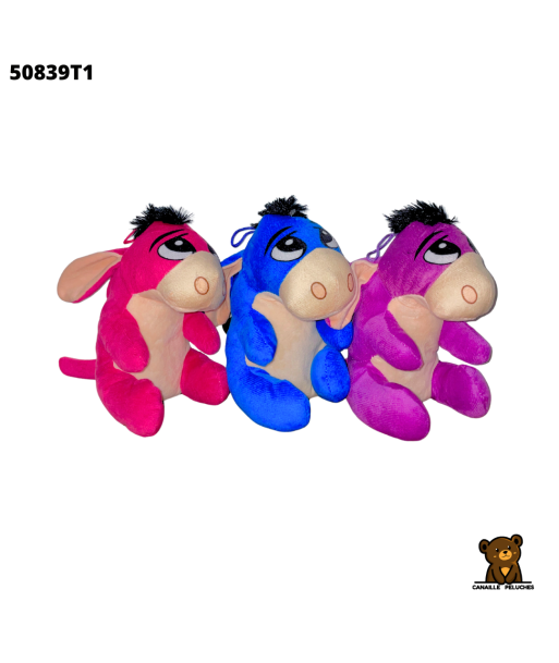 Peluche âne de 15cm, disponible en 3 couleurs mélangées. Vendu par 12 pièces.